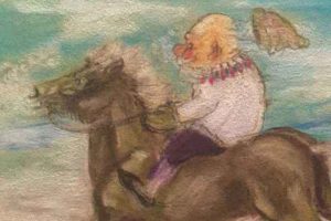 The child nodded and looked up at the sky. And then, it painted the black horse galloping over the grass that grows on top of the clouds and painted wings on the horse so that it couldn’t fall down.