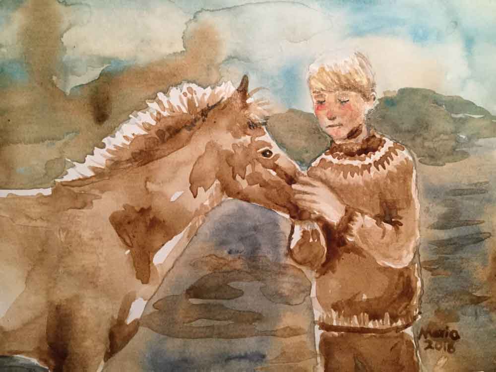 Die folgenden Nächte schlief der Junge im Stall bei seinem Pferd und als die Zeit des Abschieds gekommen war, nahm er es mit ins Freie. Dort schmiegte er sich an den Freund, streichelte lange seinen Kopf und flüsterte ihm etwas ins Ohr, dann zeigte er auf den Stall. Faxi blies mit den Nüstern als wollte er sagen, dass er verstanden habe, und trottete ruhig zurück.