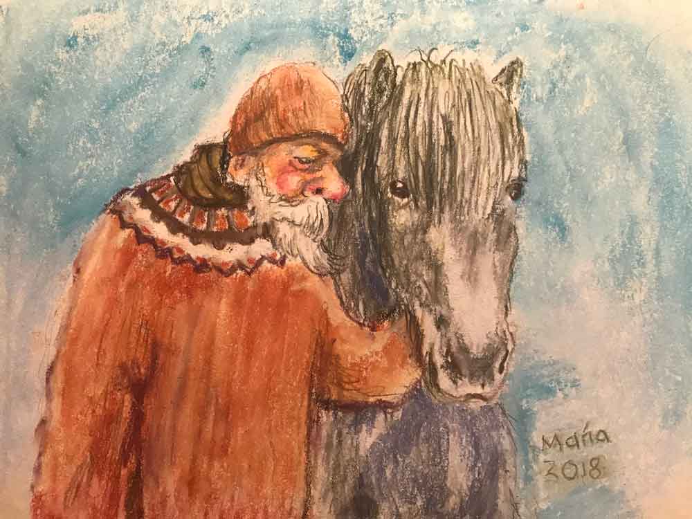 Zum Glück begleitet ihn die Schimmelstute Mysa bei seiner Suche. Für ein kleines Stückchen Brot oder auch ein liebevolles Kraulen hinter dem Ohr trägt sie ihn gern von Hof zu Hof und hilft ihm bei der Suche nach Skyr – und natürlich auch nach Stúfur.
