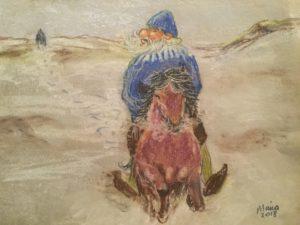 Es ist verwunderlich, dass gerade Stekkjastaur als erster zu den Menschen kommt, denn er ist schon ziemlich betagt und entsprechend ungelenkig und schwerfällig. Vor allem